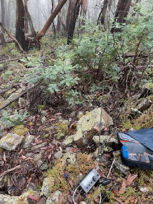 SOTA VK3/VT-004 WWFF VKFF-0619 POTA VK-0514First stop for Wednesday was Bryces Plain which is only about 500m off of Howitt Rd. Threw up a long wire, and tried to use SOTAmāt to put out a spot on 40m, but no luck at all. I was calling on CQ on 7.090 and John VK5HAA tried to work me but I was just too far down in the noise. Very helpfully John suggested a frequency on 20m if I wanted to try and work him there instead, which I did much more sucessfully and John put up a spot and came back a little later and offered to spot me back on 40m if I wanted to go back, but once again the rain had set in, so I packed up and moved on.